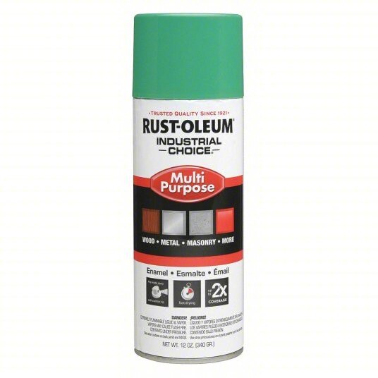 Spray Paint, 1600, Industrial Choice, Type: Multi-Purpose; Resin Type: Enamel; Container Size: 12 oz; Container Type: Aerosol; Application Method: Spray; Color: Safety Green; Finish: Gloss; Dry Time: 12 mins; Pack: 6/Case