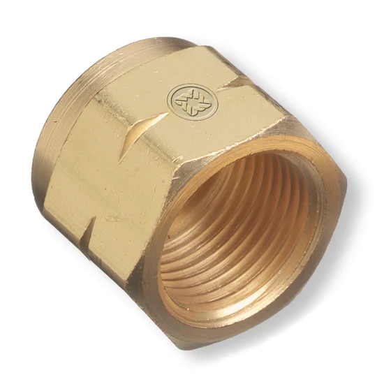 Regulator Inlet Nuts, Butane; Propane, Brass, CGA-555, 908″-14 NGO, LH Female, Pack Qty: 25 nuts/pack